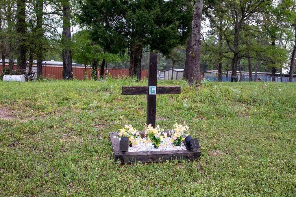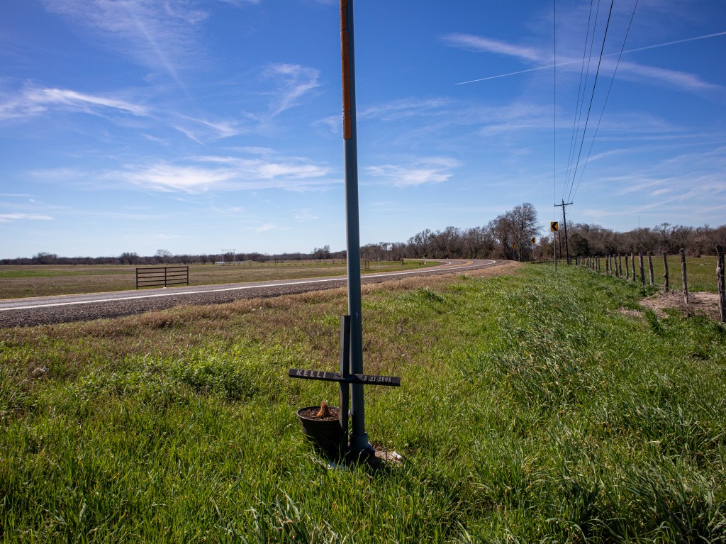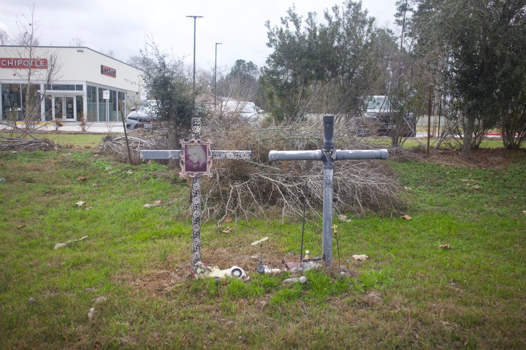 “My father in law’s cross is on the feeder road at the FM 1375 exit. If you are on I-45 coming from Huntsville you would take the 1375 exit and stay on the feeder. It’s on the right hand side.”