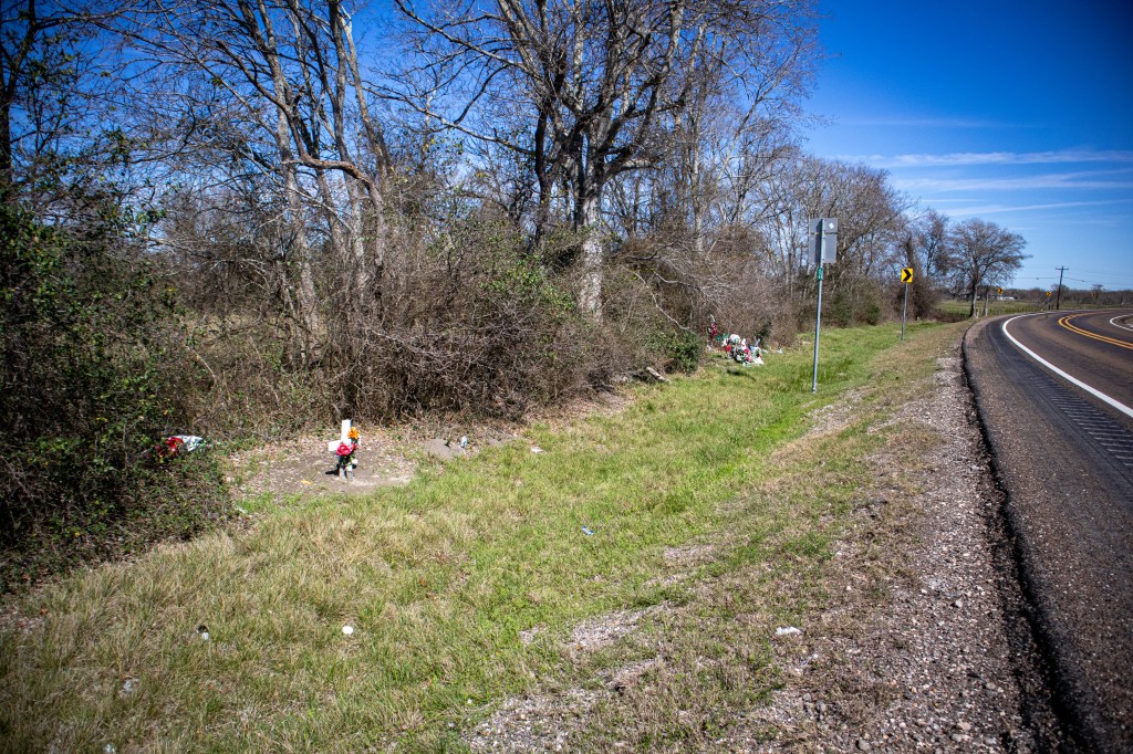 “On Roger’s Road right in front of grand oaks Dr. on the right side of the road is a young man named Ecko’s memorial site. He was a 13 yr old boy who was on a dirt bike when his accident happened in December 2023“